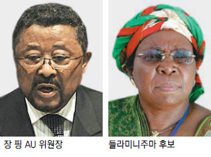1월 30일 에티오피아 아디스아바바에서 열린 임기 1년의 아프리카연합(AU) 집행위원장 선거가 끝내 당선자를 내지 못한 채 마무리됐다. 가봉 출신의 장 핑 현 위원장(69)과 남아프리카공화국 내무장관 은코사자나 들라미니주마 후보(63)가 맞서 하루 동안 4차례나 표 대결을 벌였으나 유효 득표자(회원국 3분의 2)가 나오지 않았다. 이에 따라 현 위원장 임기가 6월 말라위에서 열리는 차기 정상회의까지 연장됐다고 로이터통신이 31일 전했다.